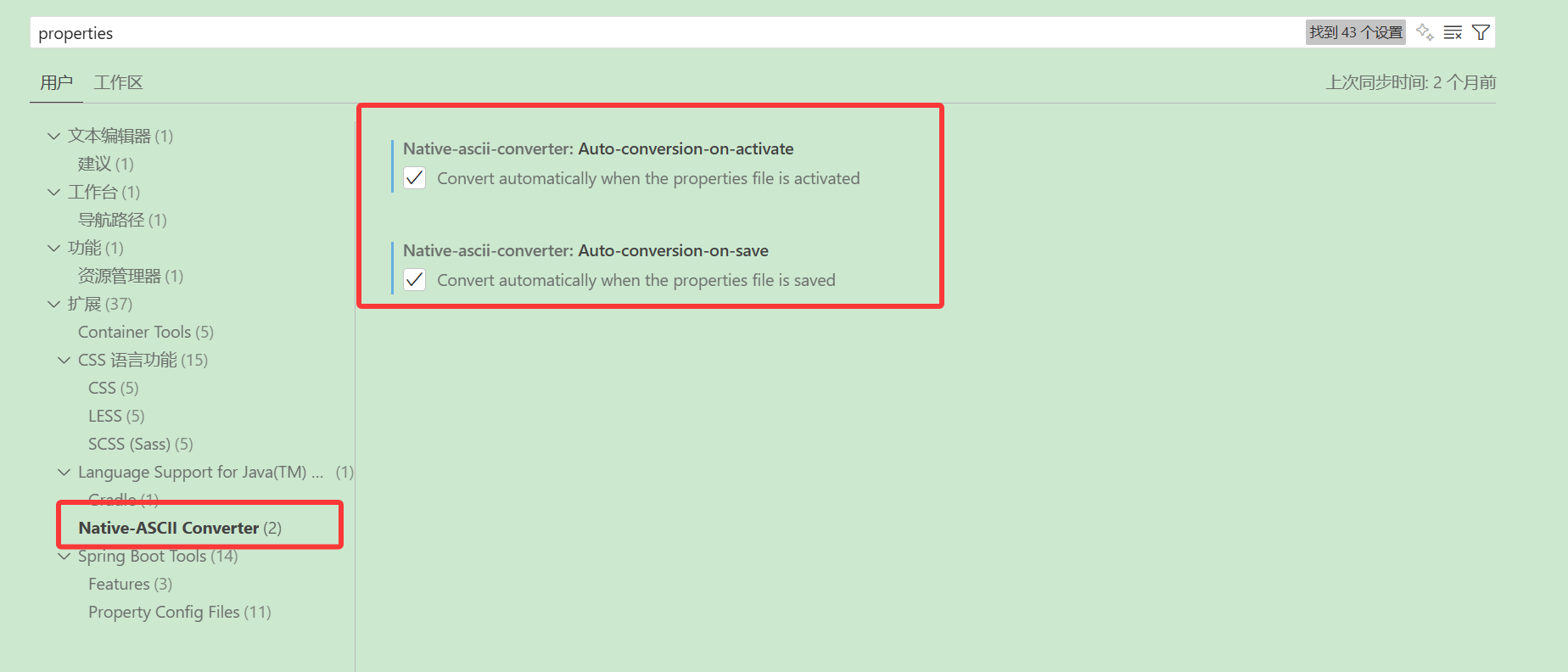 编译器转到VSCode后,发现properties文件无法显示中文,编写中文后也不会自动转义