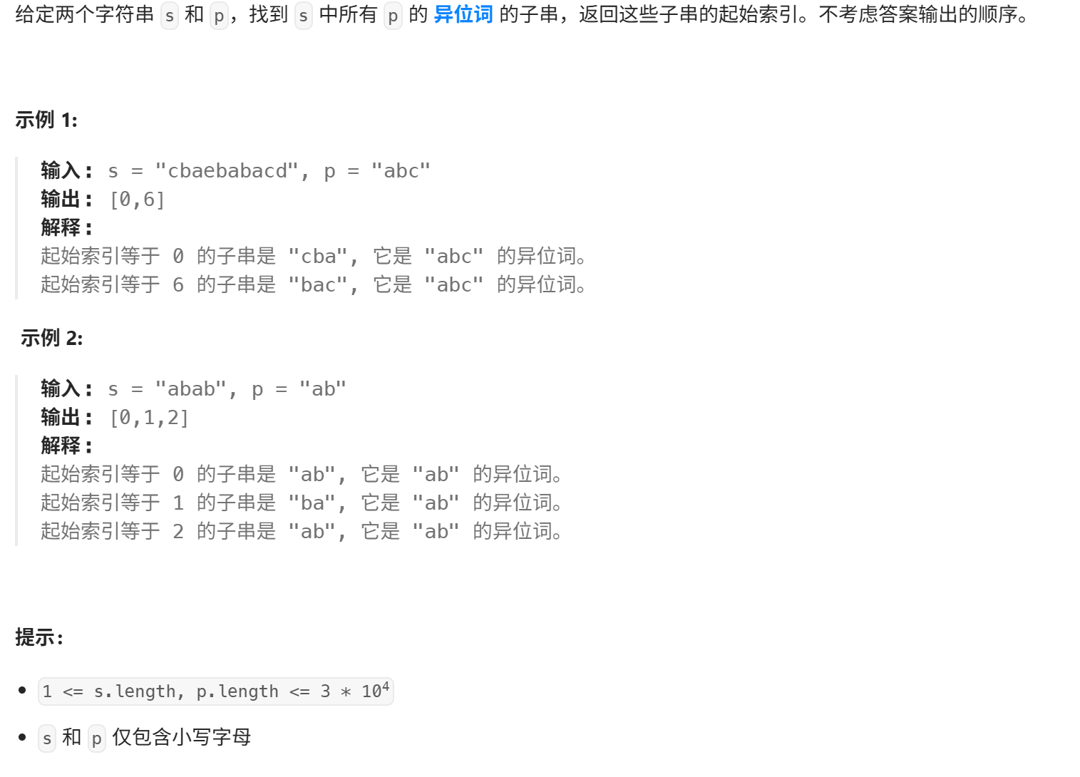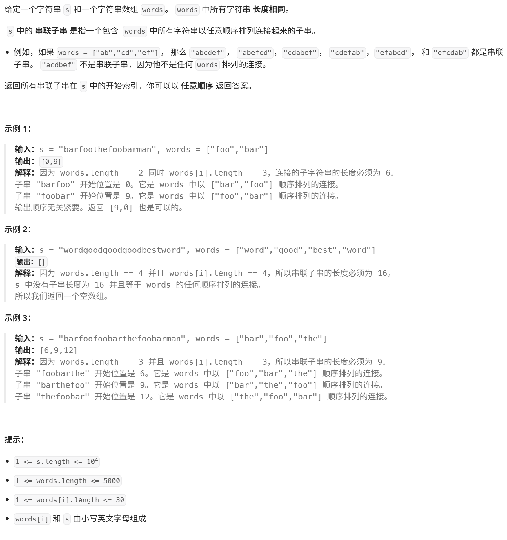 把主串按单词长度分开,就可以转换为找words的异位词。