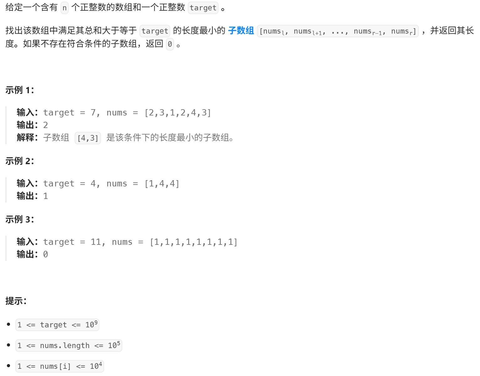 1. 长度最小的子数组(LC209)