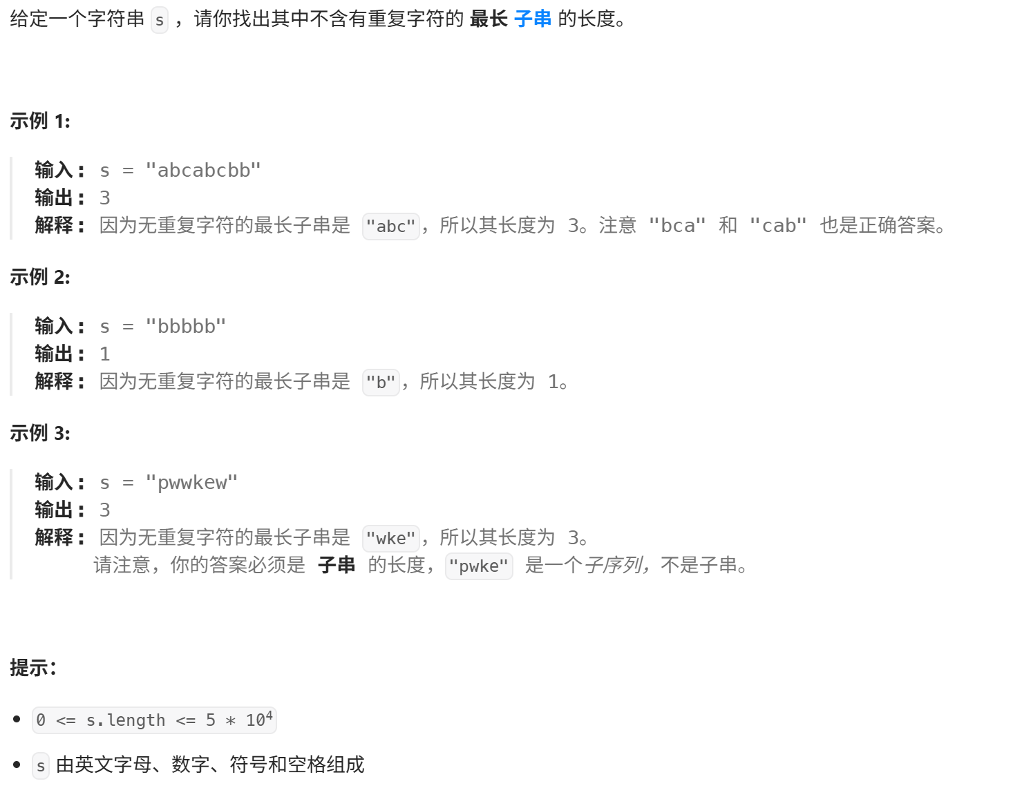 2. 无重复字符的最长子串(LC3)