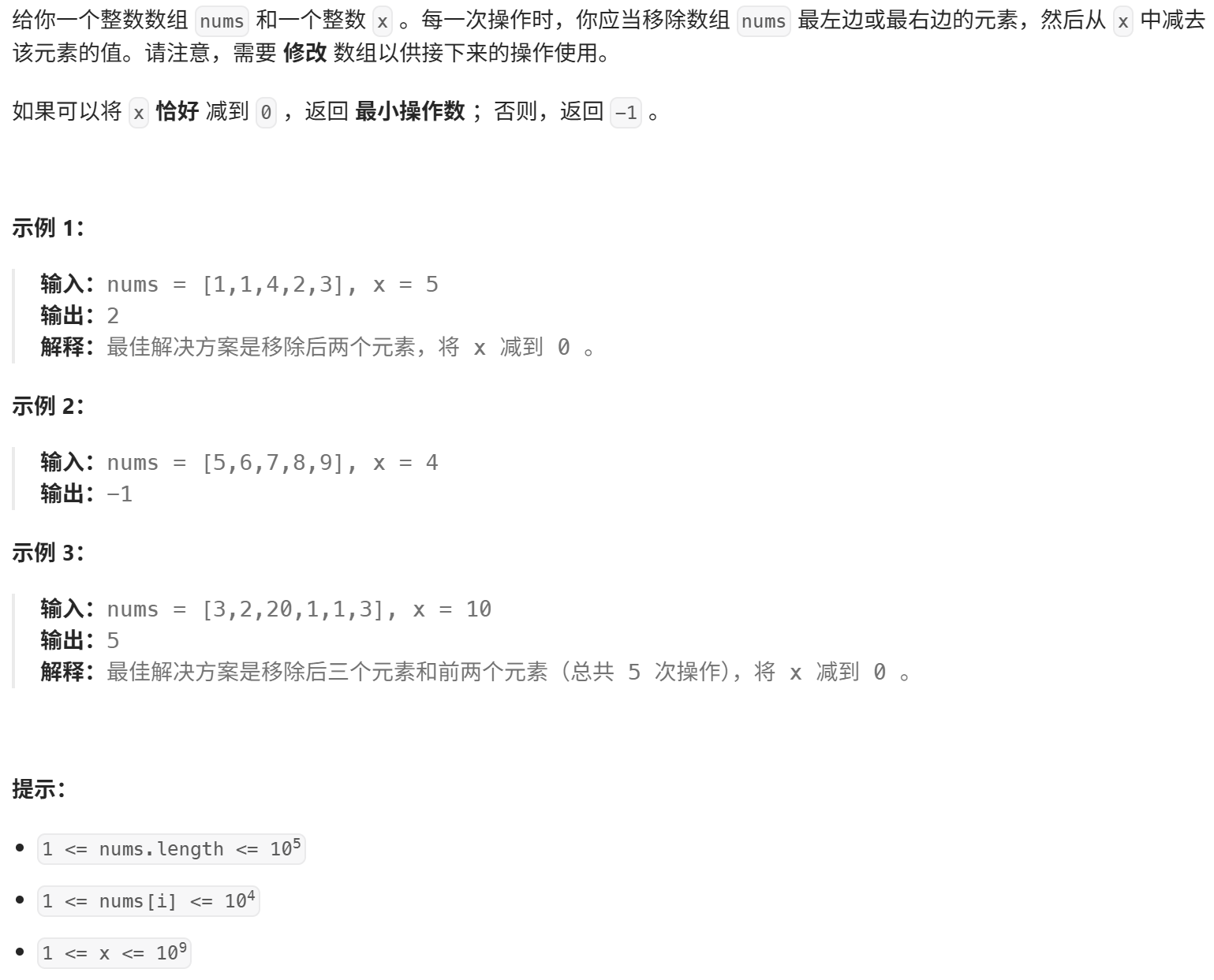 - [4. 将x减到0的最小操作数(LC1658)](#4. 将x减到0的最小操作数(LC1658))