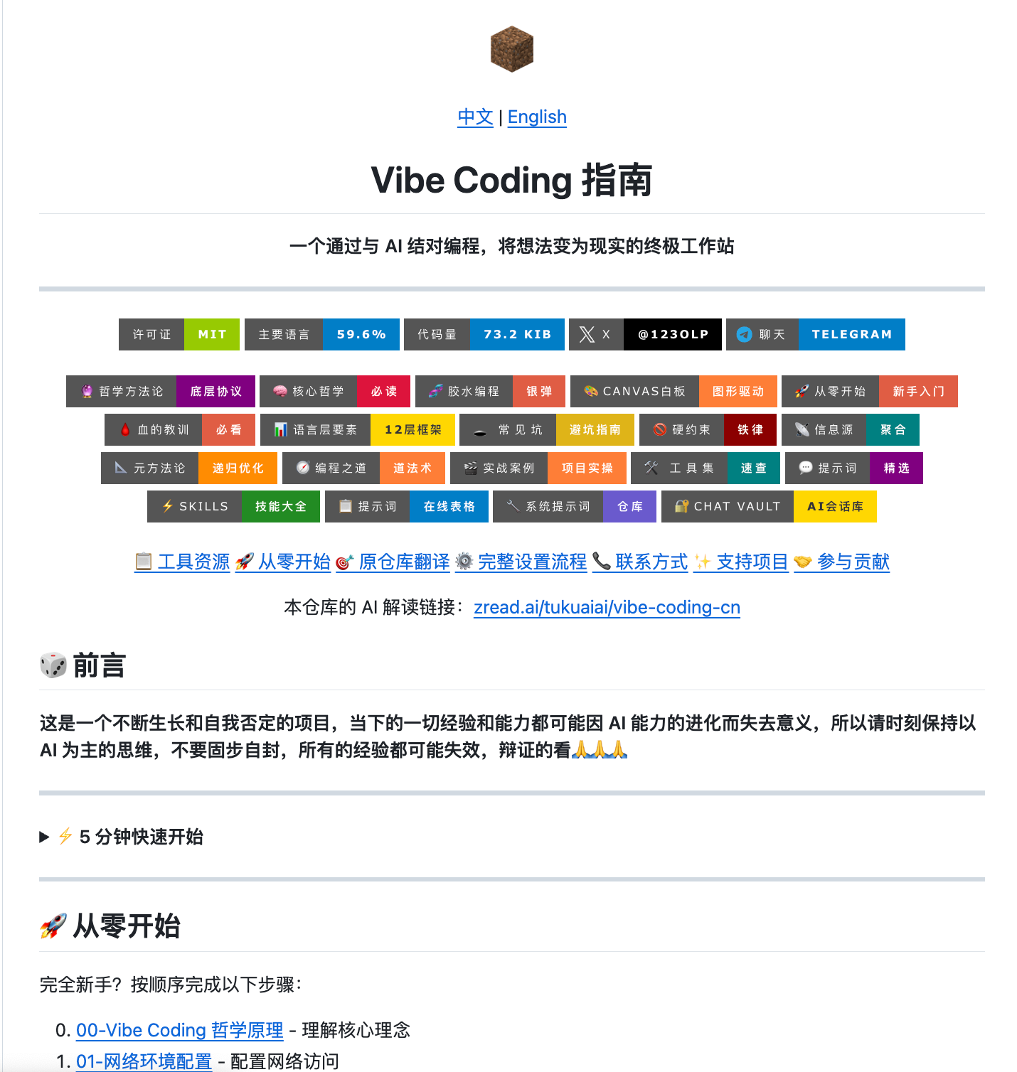 但最近我发现了一个GitHub 上的开源项目 vibe-coding-cn (7k+star )