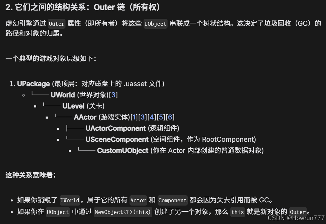 UObject 体系是 UE 框架最核心的设计,是所有游戏对象、资源的基础,支撑了反射、蓝图、GC、序列化等关键能力,也是 UE 区别于其他引擎的核心特征: