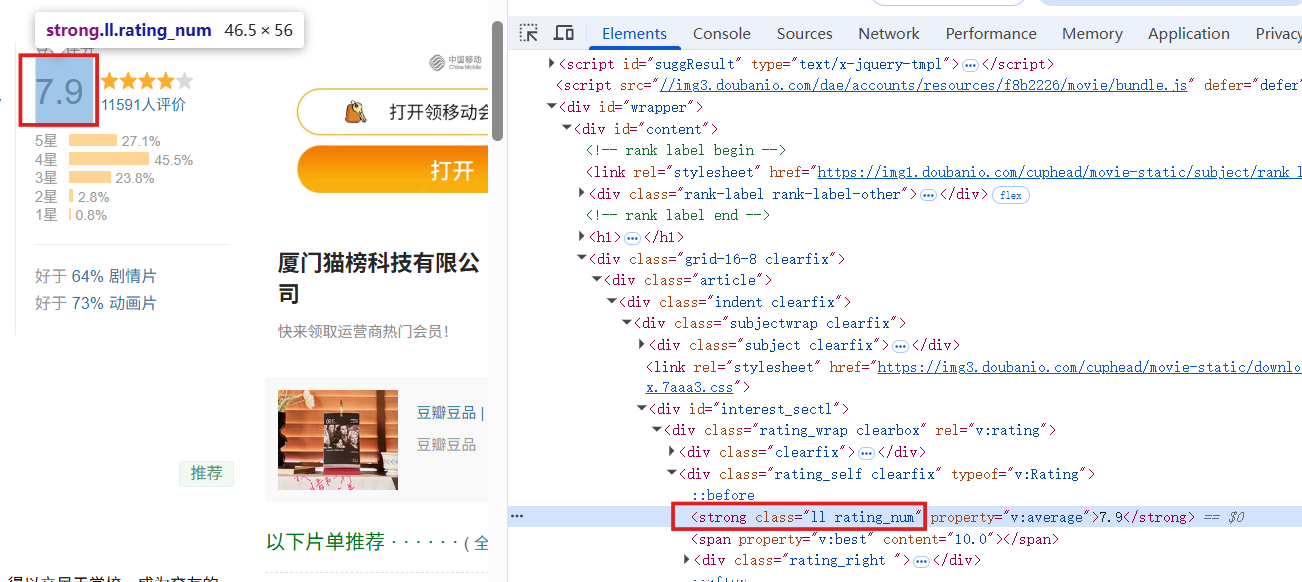 即便浏览器里看到的类名是"ll rating_num",实际类名是"rating_num"。