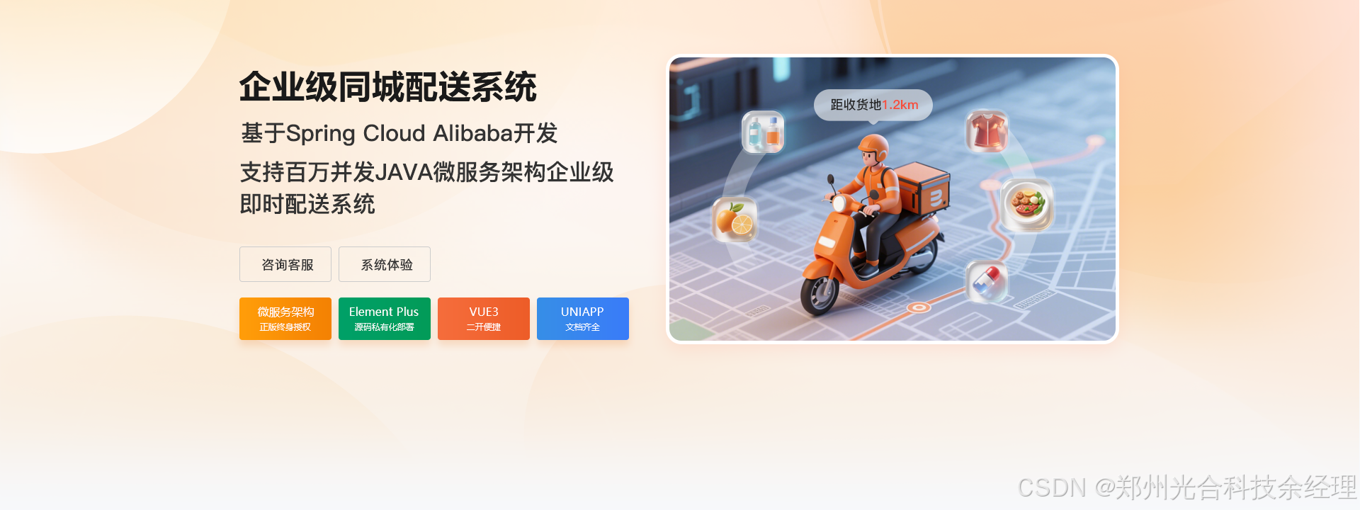 随着即时配送市场的快速发展,同城跑腿配送系统已成为连接商户、骑手与用户的重要桥梁。此类系统需具备高并发、低延迟、高可用等特性,同时支持订单实时追踪、智能调度、多端协同等复杂业务。为应对这些挑战,我们设计了一套基于 SpringCloud 微服务架构 与 Vue3 前端生态的全栈技术方案,确保系统稳定、可扩展、易维护。