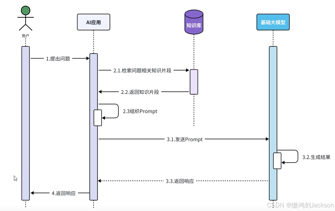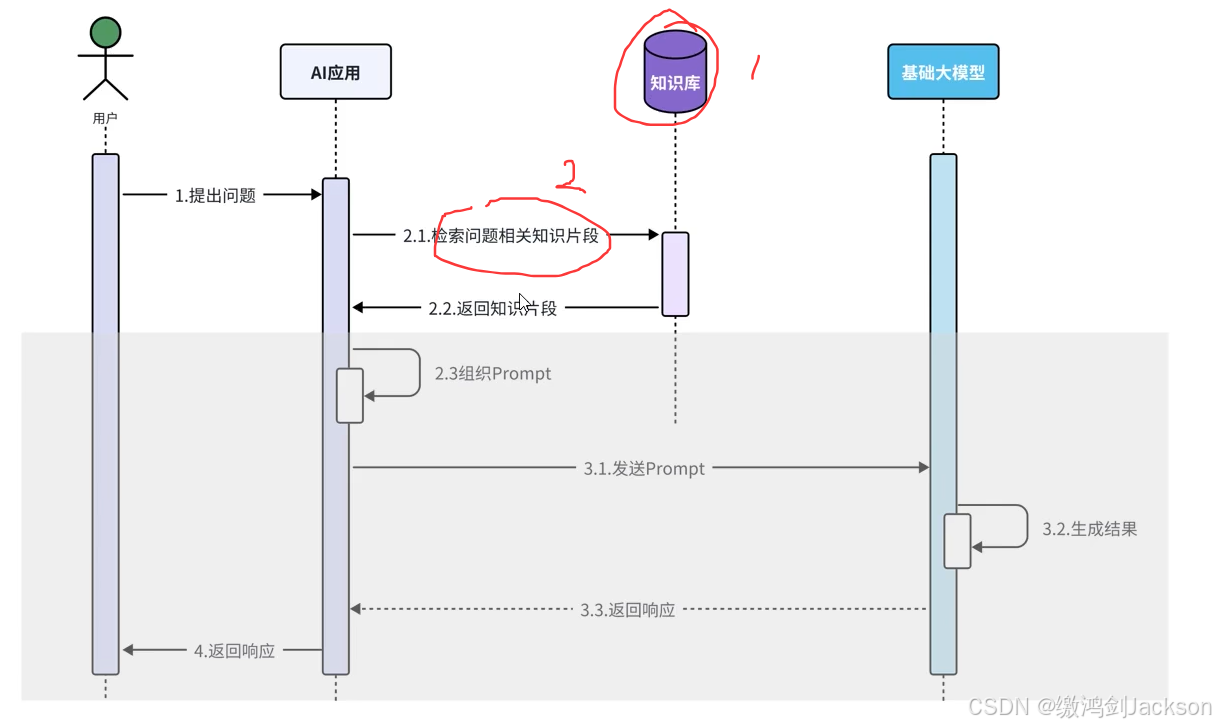 如下图,当用户问一些未公开的内部问题时,Java后端会先根据问题,去RAG知识库找响应的知识片段,然后java后端带着这些知识片段,再调用大模型,这样一来,大模型就知道未公开的知识了,也就可以回答你问的未公开的内部问题了。