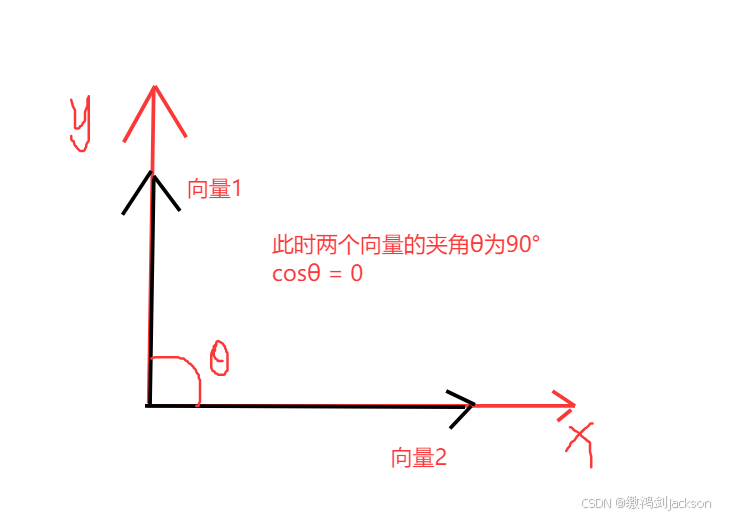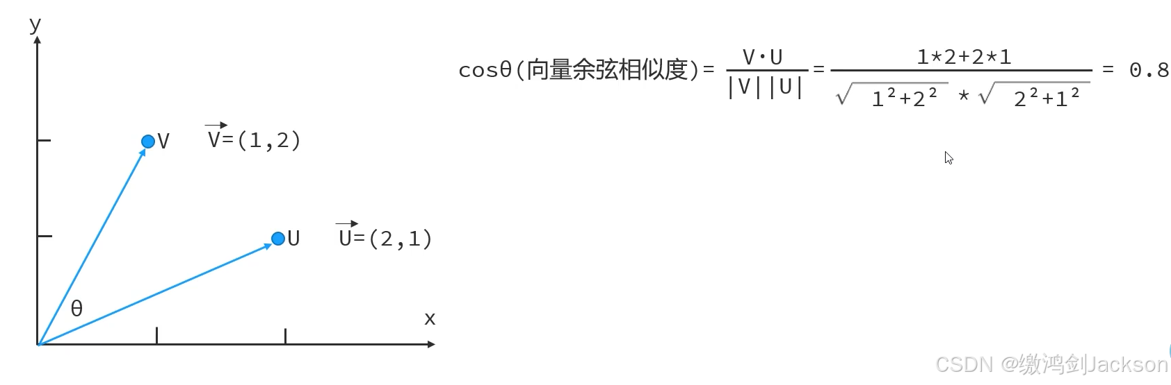 如下图,θ是两个向量的夹角,那cosθ就是所谓的余弦相似度。