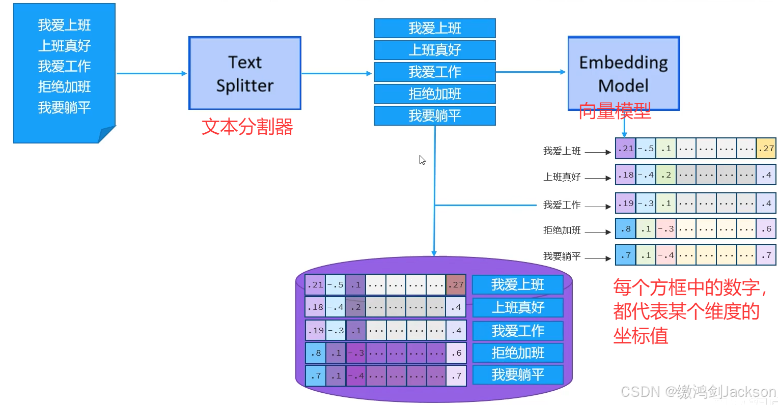 ④将每一个向量及其对应的文本片段(知识片段),存到向量数据库即可。