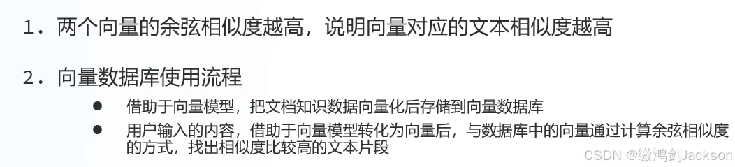 ②拿着这个向量,和向量数据库中存储的向量进行比对,计算它们之间的余弦相似度