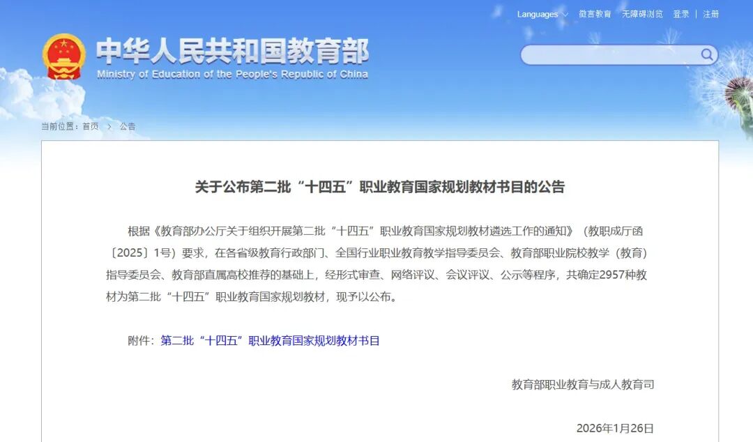 5本入选第二批"十四五"职业教育国家规划教材