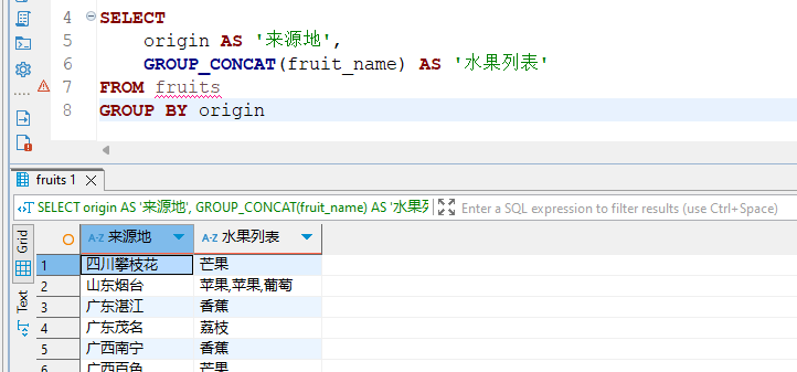 GROUP_CONCAT(fruit_name) AS '水果列表'