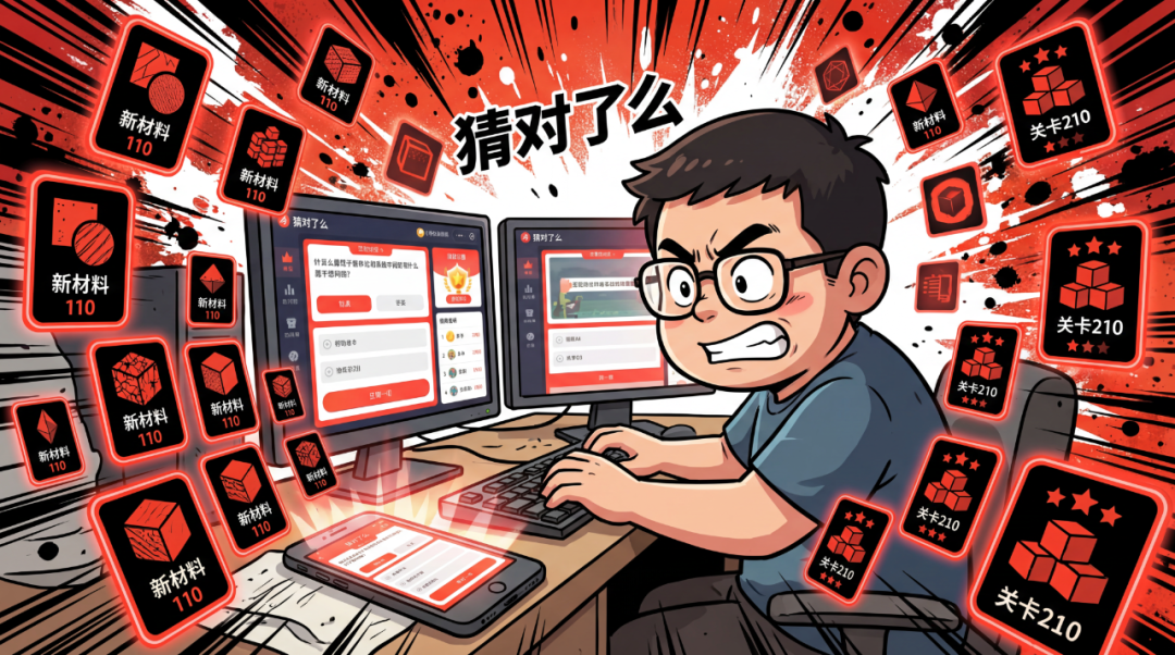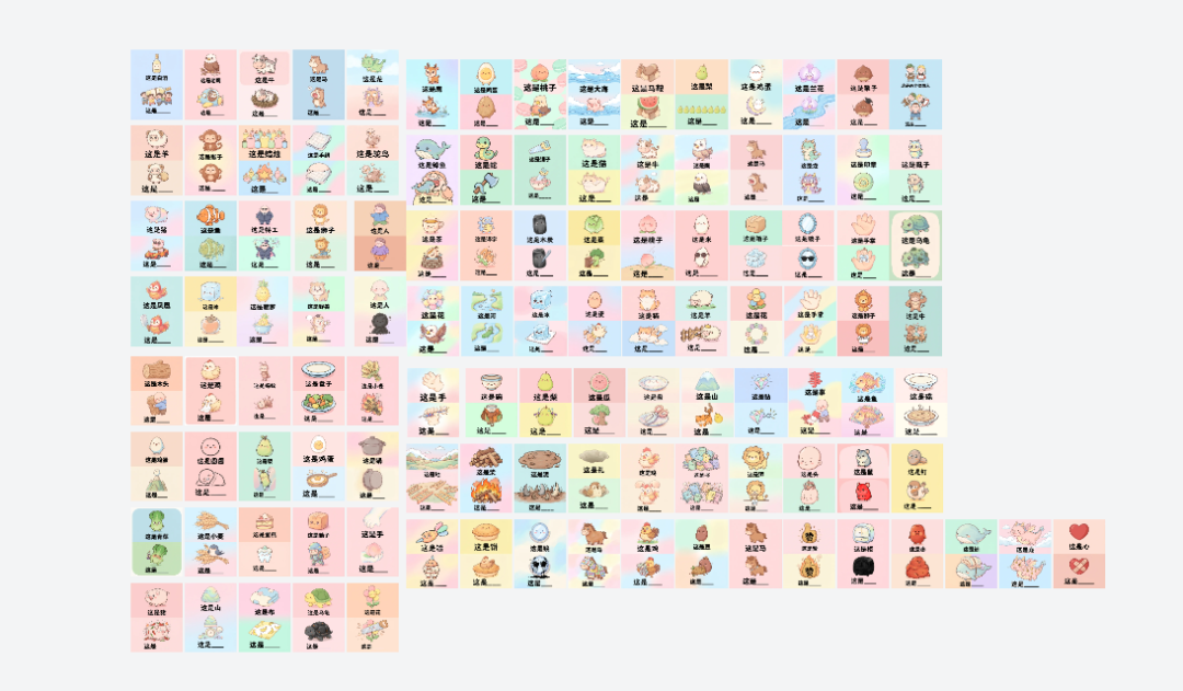 第一轮素材生产(100组谐音梗看图猜词)也比较顺利,可能是运气比较好。