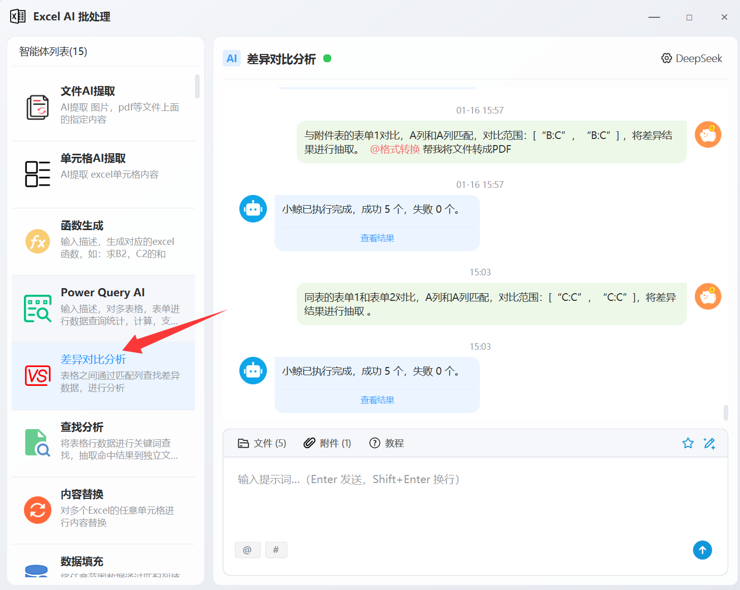 打开后, 我们找到"差异对比分析" 这个智能体