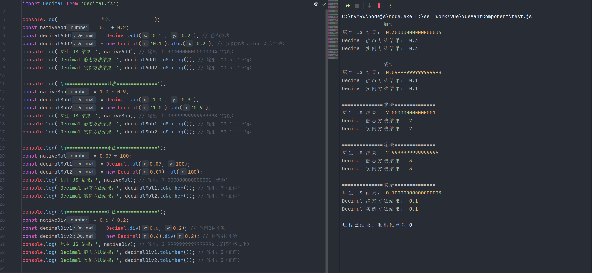 console.log('Decimal 实例方法结果:', decimalDiv2.toNumber()); // 输出:3(正确)
