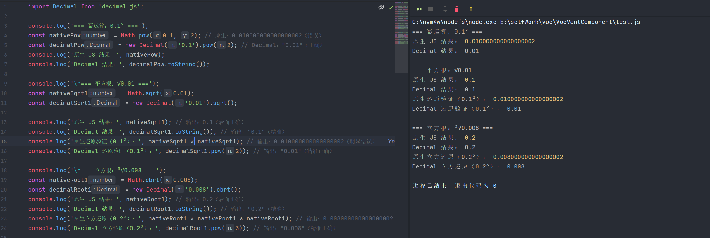console.log('Decimal 立方还原(0.2³):', decimalRoot1.pow(3)); // 输出:"0.008"(精准正确)