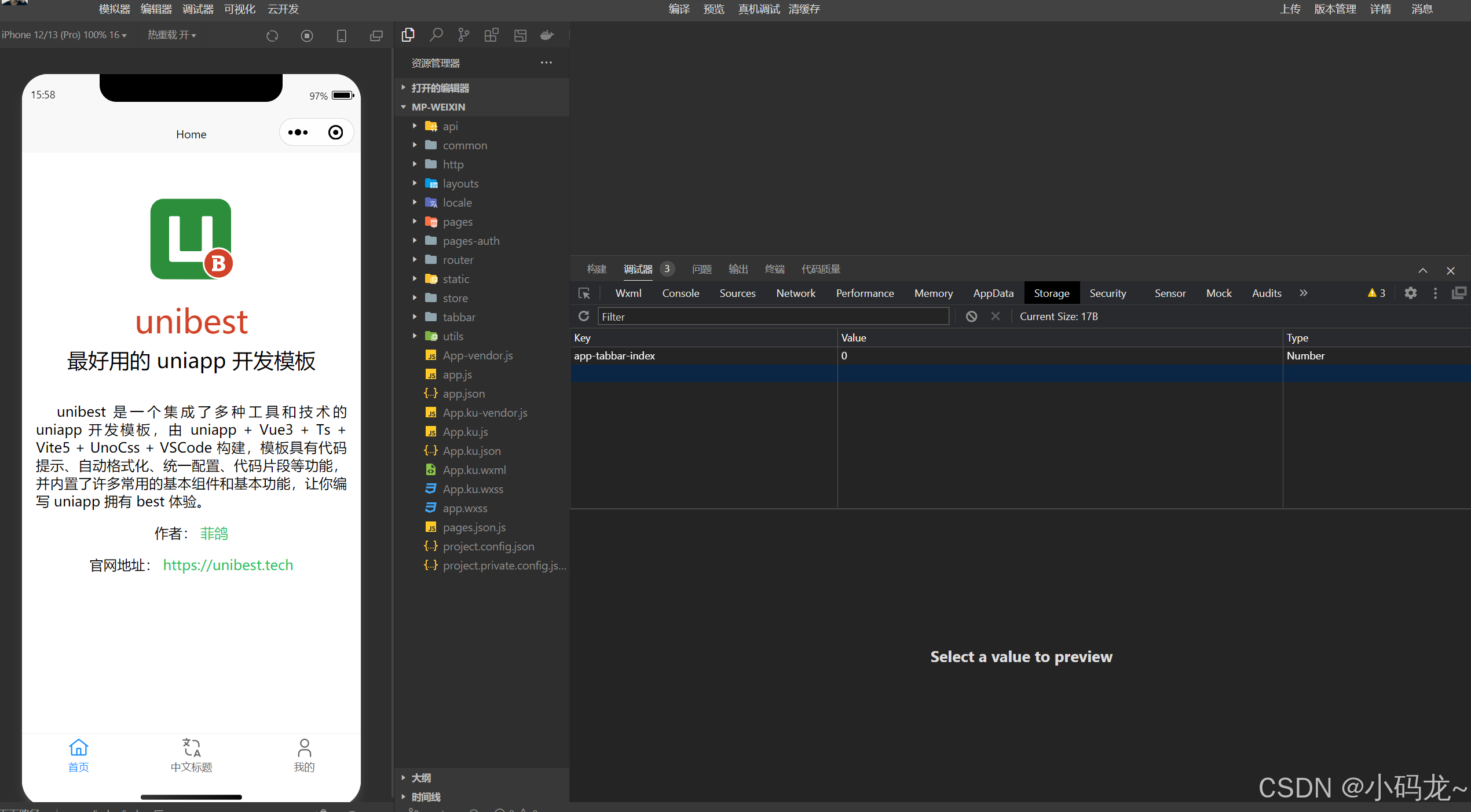 这是 Unibest 最直观的优势,相较于传统 Uni-app 的 Webpack 构建,Vite5 的加入实现了毫秒级热更新 + 按需编译:
