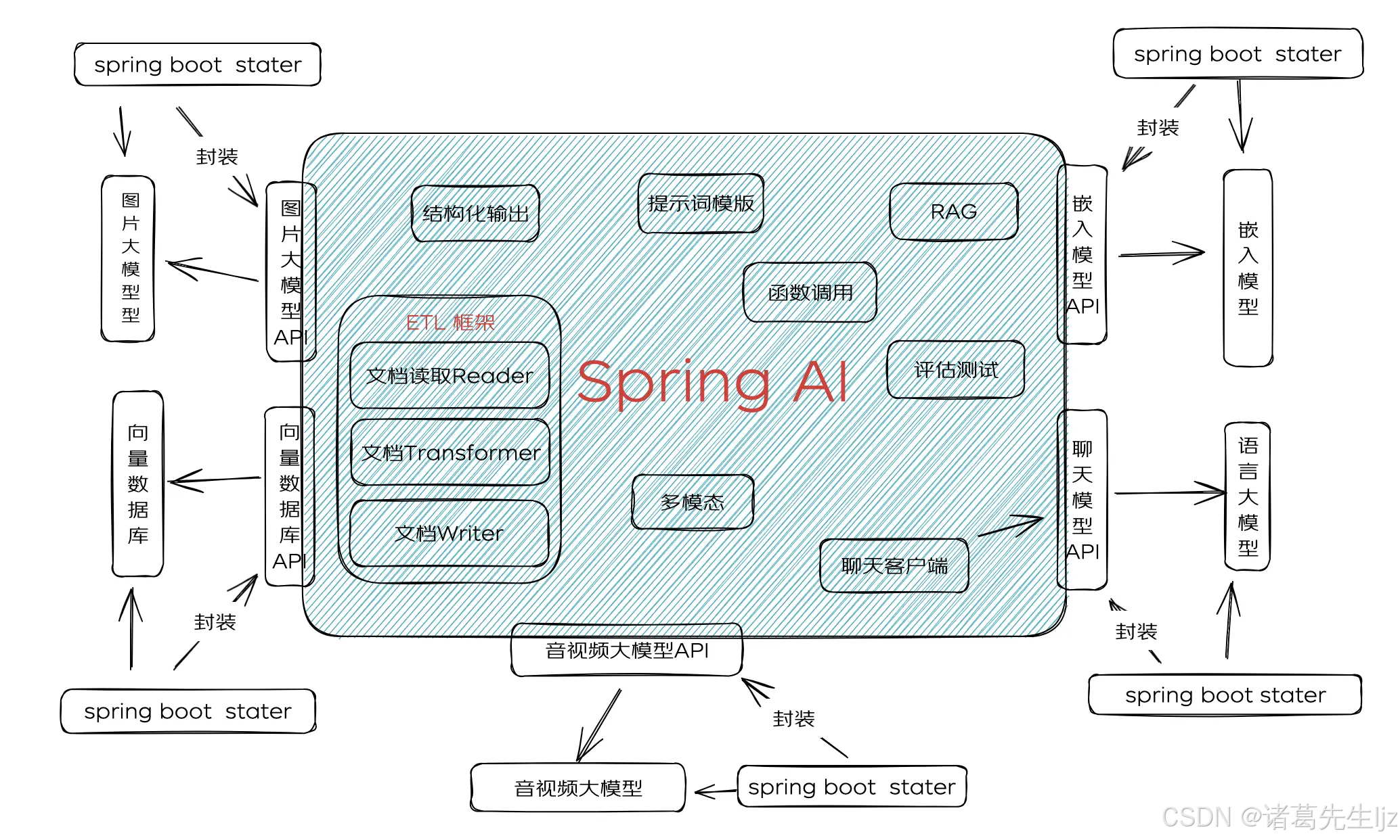 Spring AI的本质 是**"大模型时代的Spring JDBC"**。正如JDBC用统一接口屏蔽了不同数据库(MySQL、Oracle)的差异,Spring AI试图用统一接口屏蔽不同大模型服务的差异。