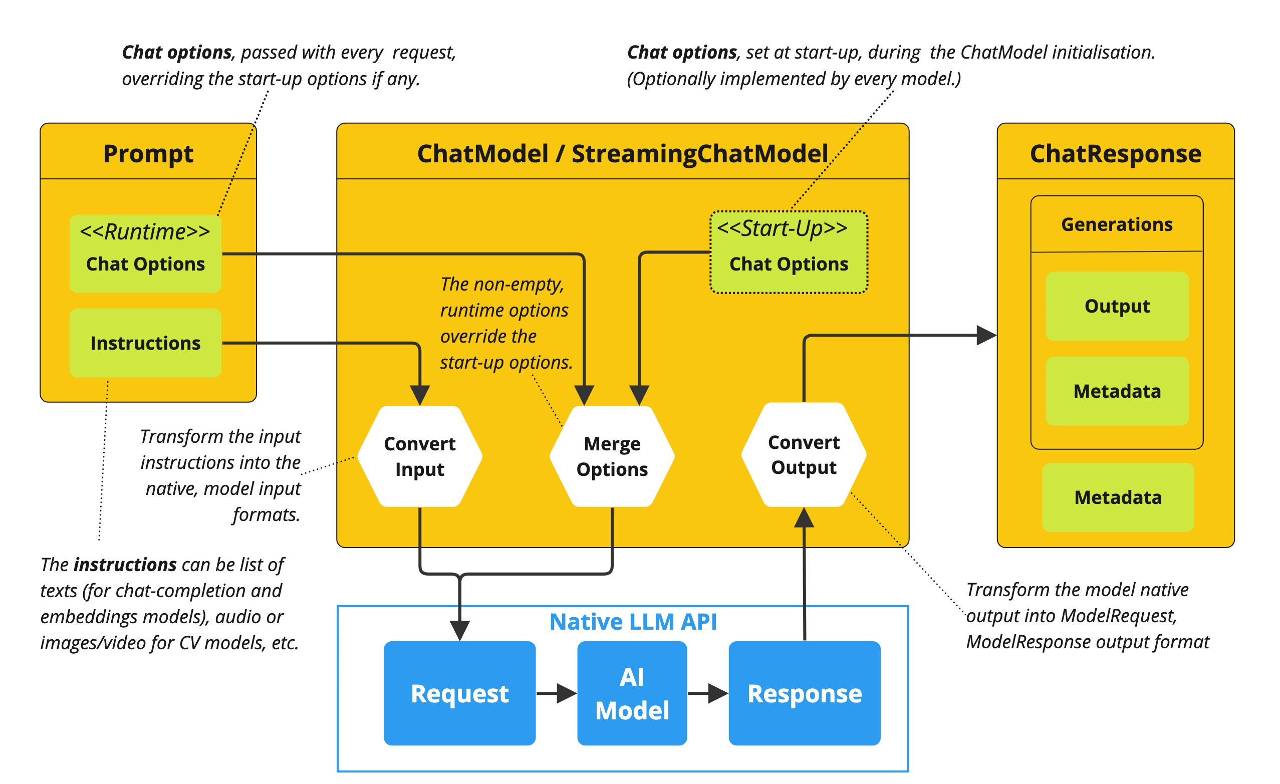 LLM: Large Language Model就是大语言模型,一种学了海量文字的 AI,能听懂人话、说人话,还能写东西、解问题。Spring AI 目前支持处理语言、图像和音频作为输入和输出的模型。