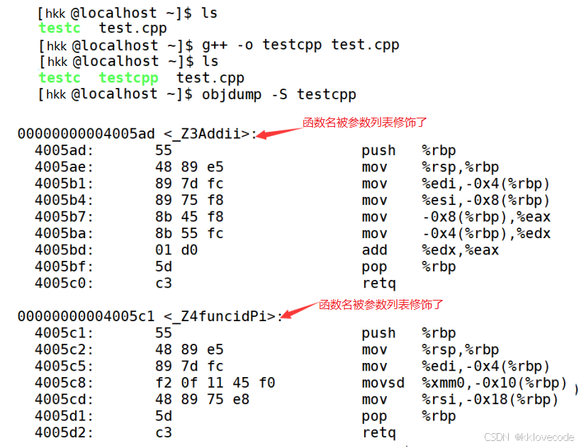 可以看到C++代码在汇编下这个函数名被进行了修饰,并且修饰信息就是与参数列表的类型