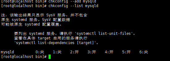 # 通过chkconfig命令将mysqld服务加入到自启动服务项中。