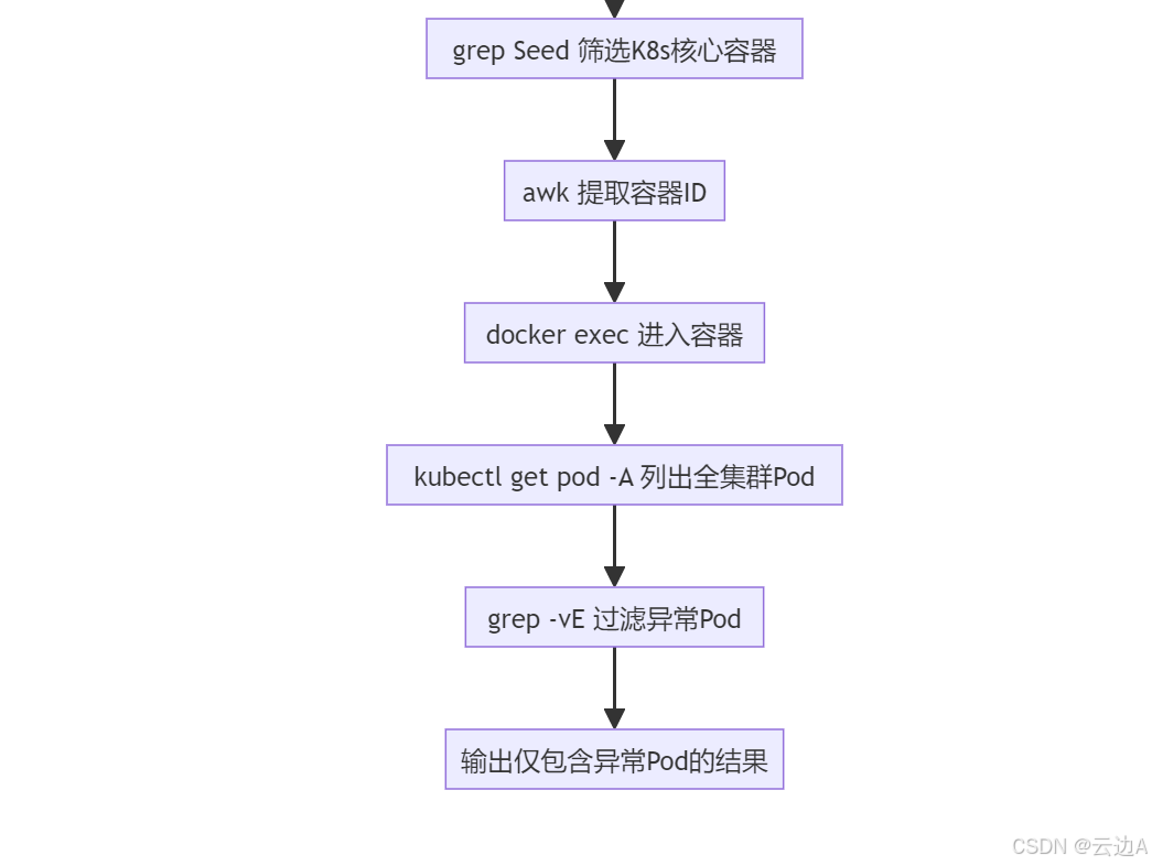 | 过滤结果漏报/误报 | 1. 正常Pod被过滤出来;2. 异常Pod未显示 | 1. 检查正则表达式:补充遗漏的就绪状态(如6/6、7/7);2. 去掉Comp过滤(若集群输出无该字段);3. 先执行kubectl get pod -A查看原始输出,调整正则 |