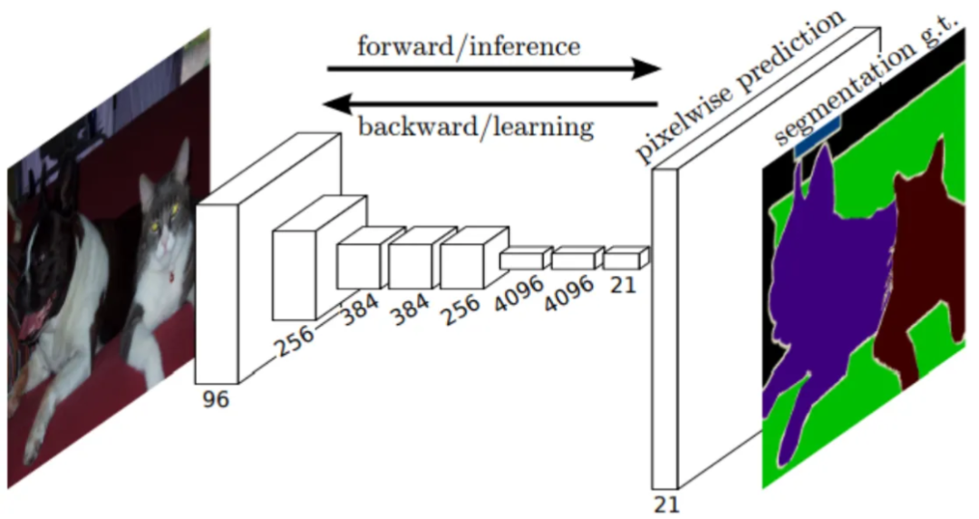 在语义分割中,FCN 通过在整个网络中保留空间信息,实现了像素级的预测。网络学习将输入图像中的每个像素与特定类别相关联,从而生成详细的分割图。这对于计算机视觉应用特别有用,例如目标检测、场景理解和图像分割。