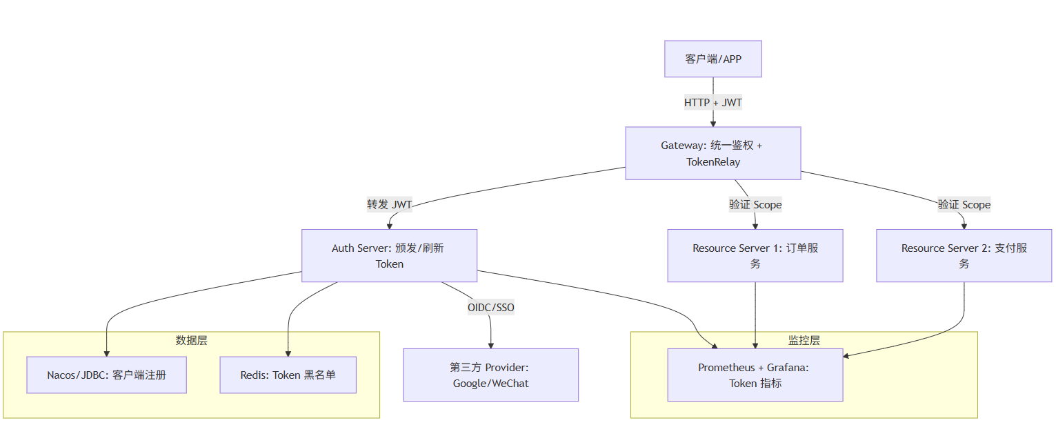 - 监控缺失 → 集成 Micrometer,监控 token 发放/验证率