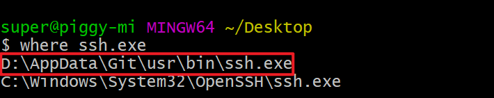 配置小乌龟的 ssh.exe 文件路径:git bash 查一下 ssh 在哪
