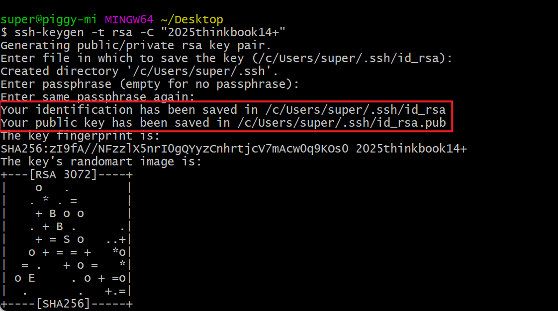 ssh-keygen -t rsa -C "用于备注这个密钥是哪个设备的"