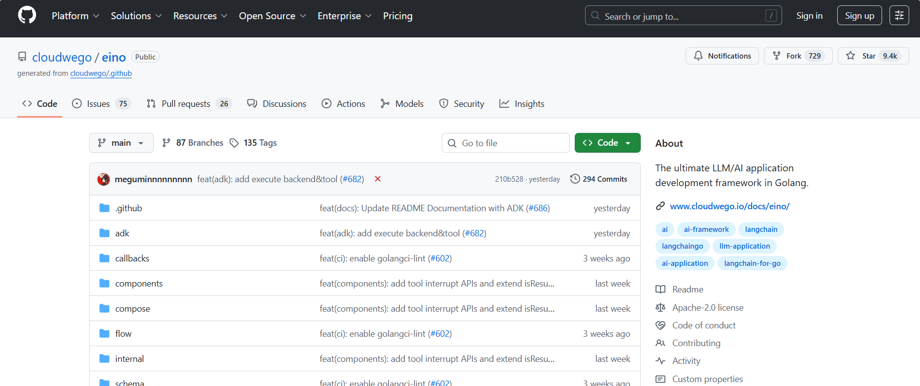这个已经开源了,github地址:https://github.com/cloudwego/eino。点击跳转。