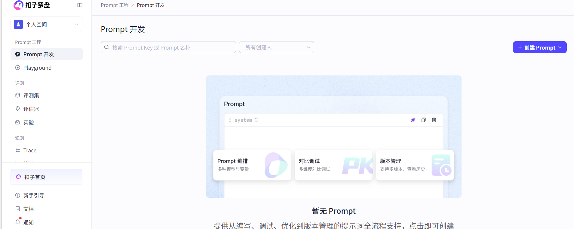 Coze罗盘是字节跳动免费开放给大家用的一个 AI机器人工厂管理系统。你可以把它想象成一个超级智能的控制中心和质检车间。从你开始造一个AI机器人(开发)、到反复训练它(调试)、给它考试看它水平如何(评测)、再到把它上线工作并且时刻盯着别出问题(运维),整个生命周期都可以在这个系统里完成。