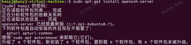 在Ubuntu Linux上安装SSH 服务器,在终端上输入:sudo apt install openssh-server