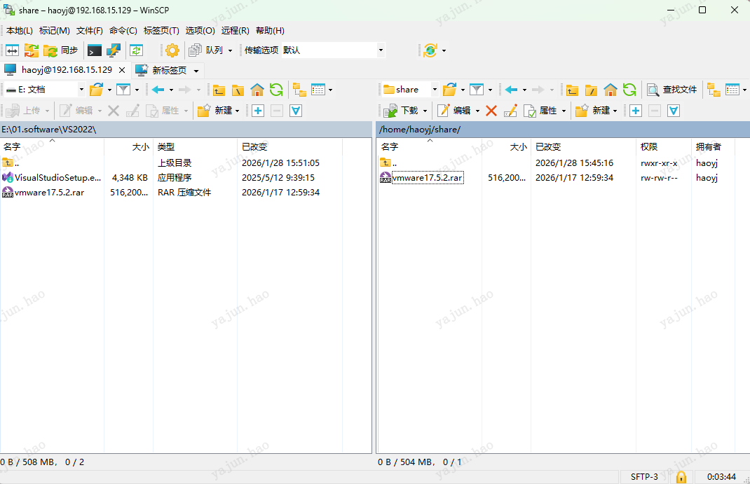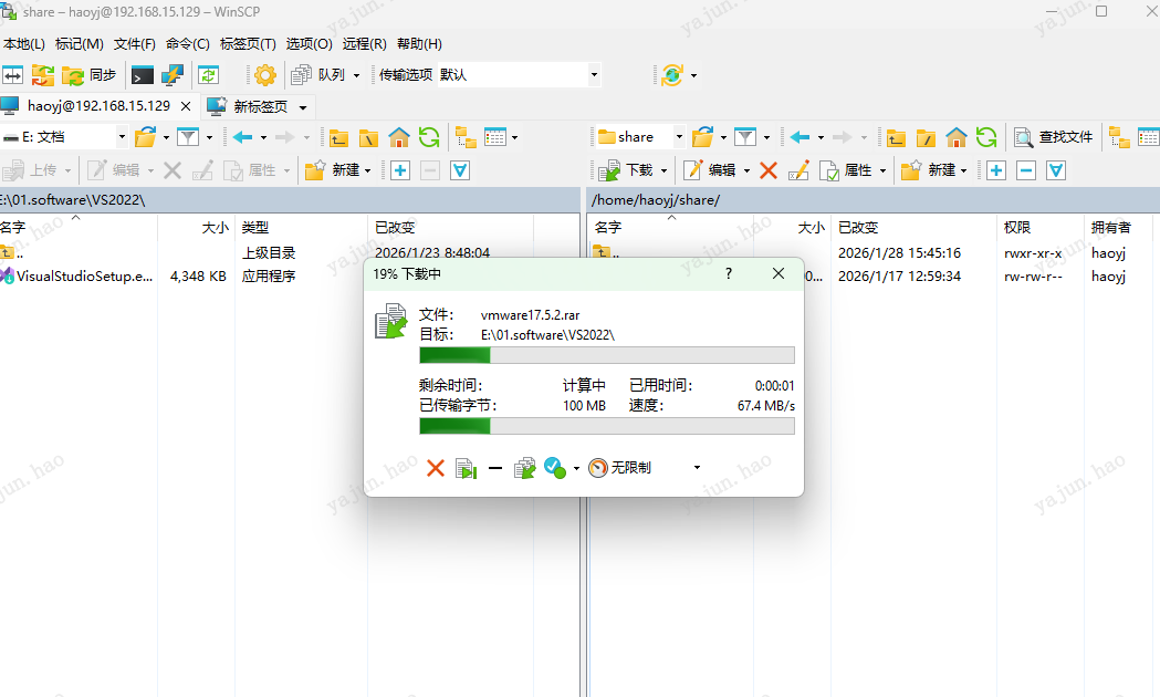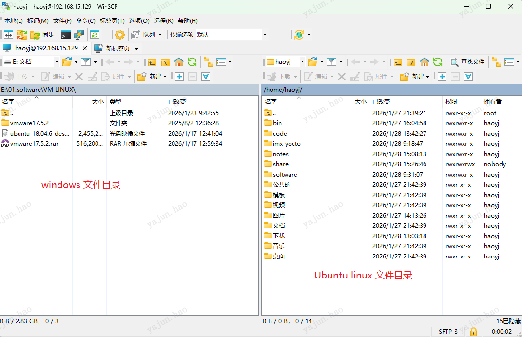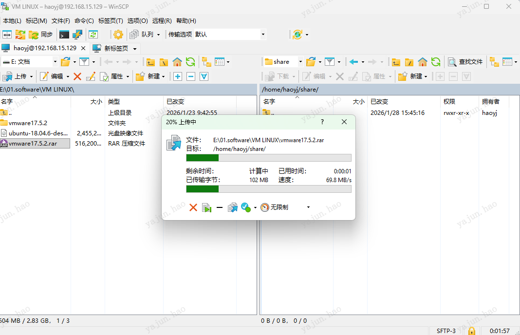这样就可以将windows中的文件拖入Linux文件夹,或将Linux中的文件拖入windows文件夹。