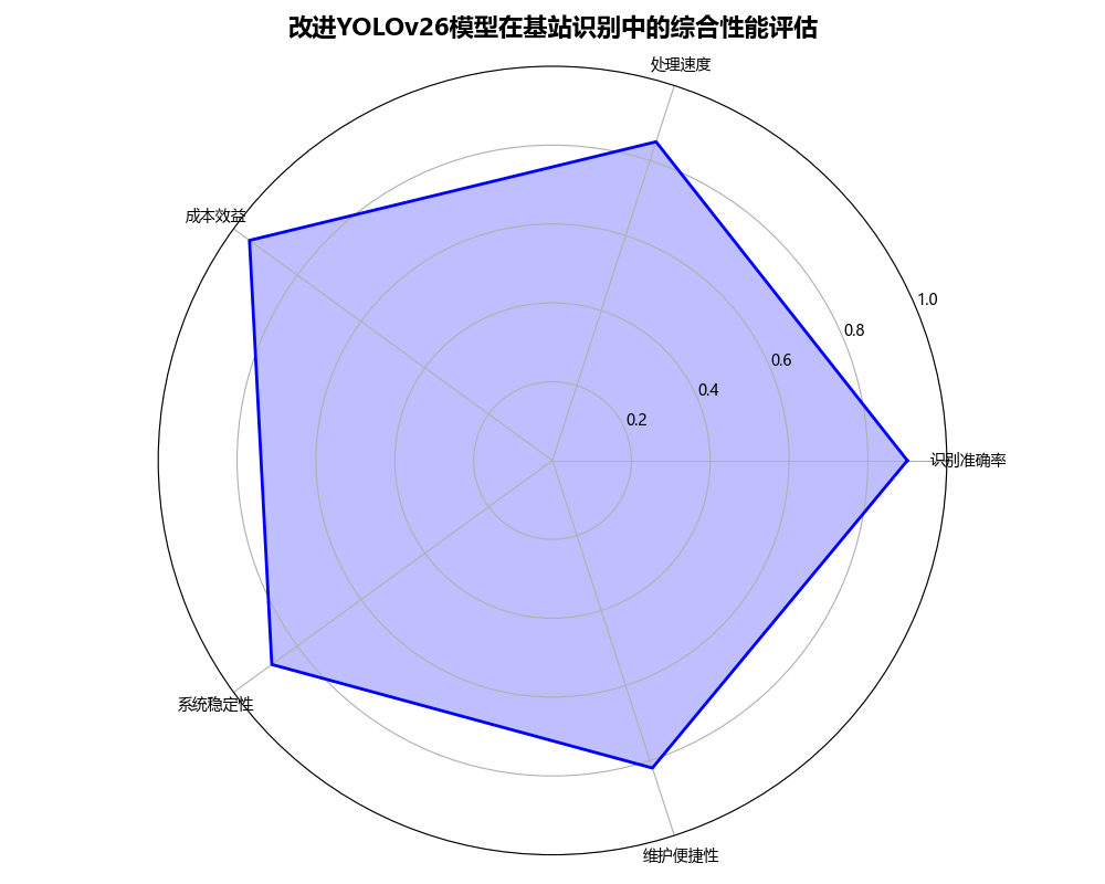 在准确率和召回率方面,改进YOLOv26模型分别达到了0.921和0.903,均优于其他对比模型。这说明改进YOLOv26模型在减少误检和漏检方面表现更为出色,能够更准确地识别基站天线目标。特别是在处理小目标和复杂背景下的目标时,改进YOLOv26模型的性能优势更为明显。