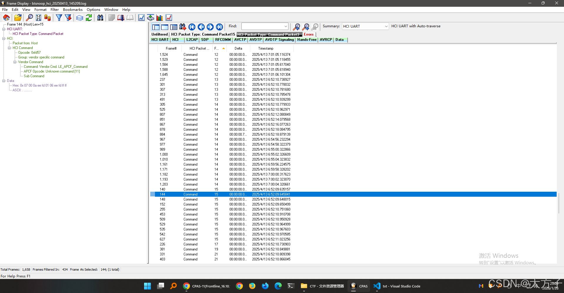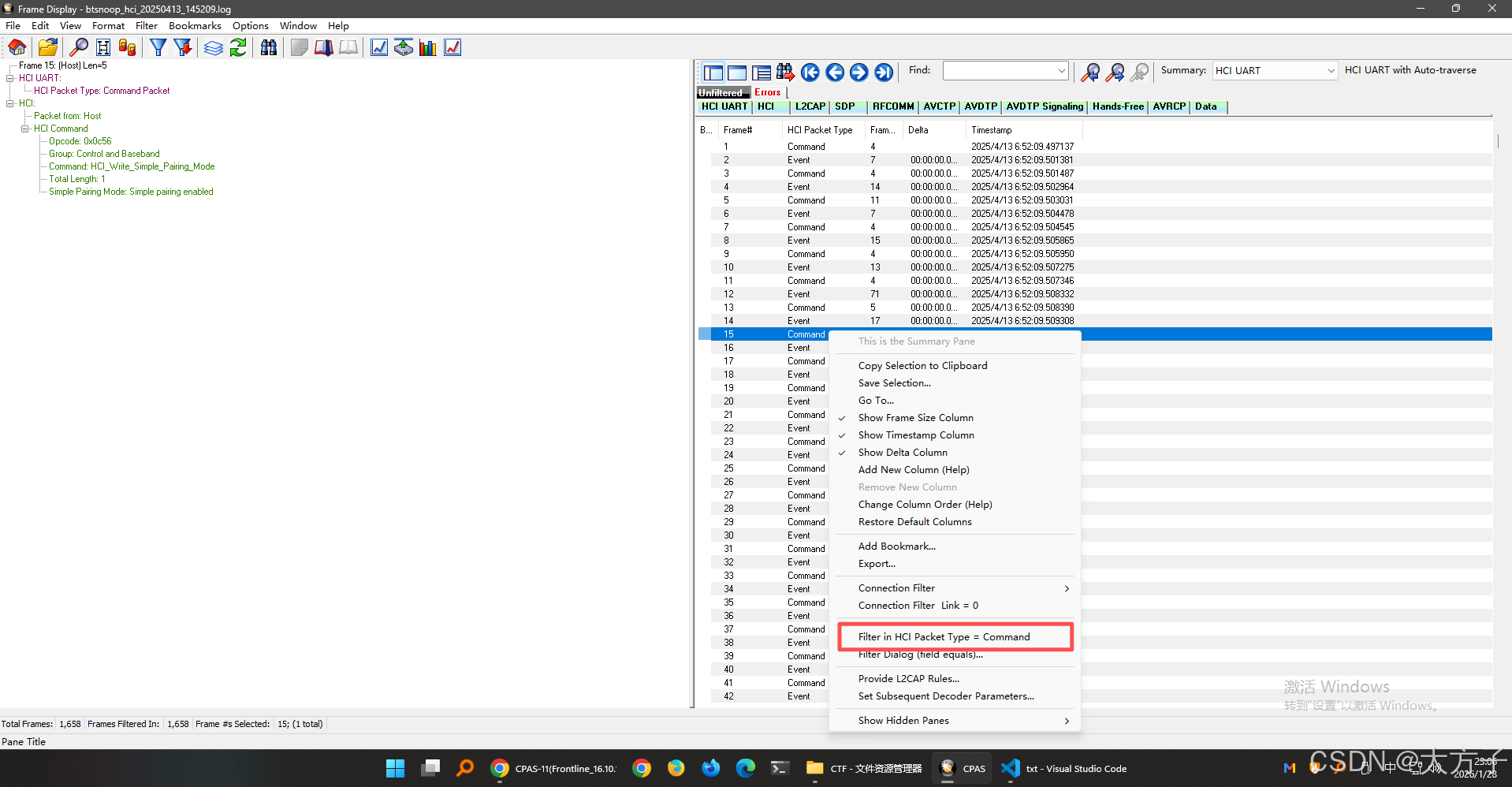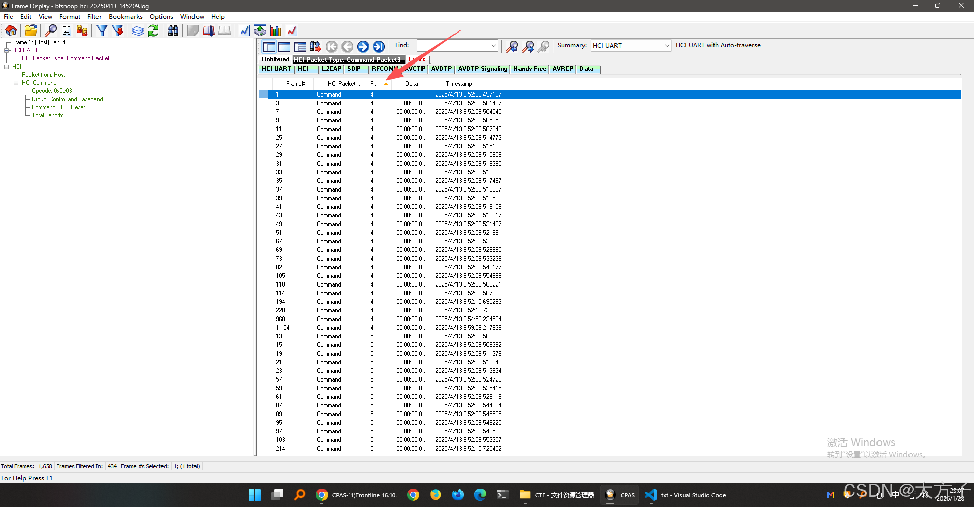 添加筛选器,只看command,因为提示信息说了是命令