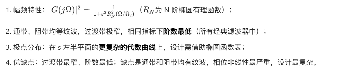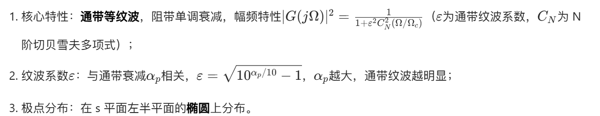 - 核心特性:通带单调平坦 ,阻带等纹波,又称为 "逆切贝雪夫滤波器";
