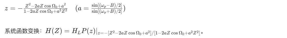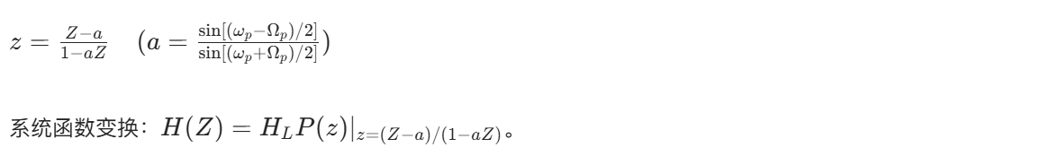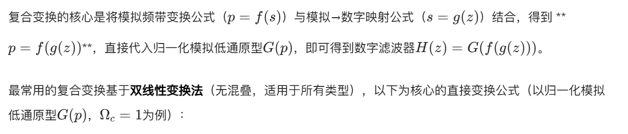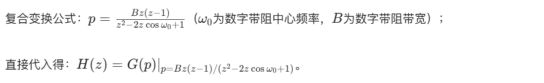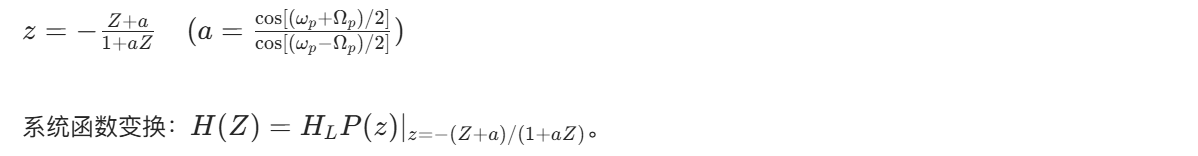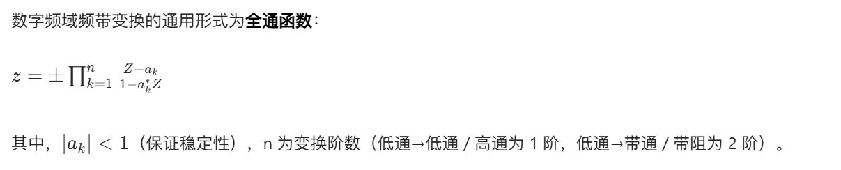 也可直接将模拟低通原型通过一次变换得到各类数字滤波器,或在数字域进行频带变换。