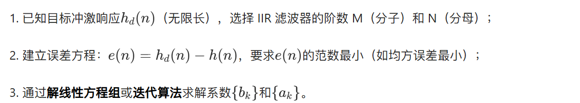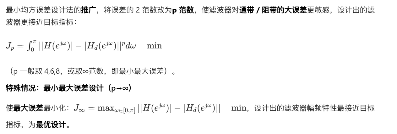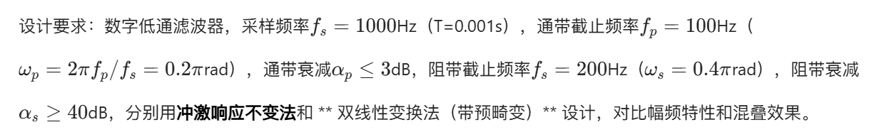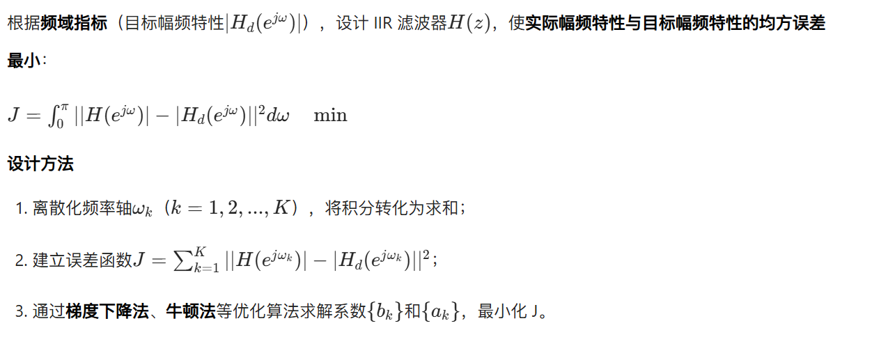 - 现代直接法:不依赖模拟滤波器,直接在数字域通过优化算法设计满足指标的 H (z),适用于经典方法无法满足的特殊指标要求,需借助计算机(MATLAB)实现。