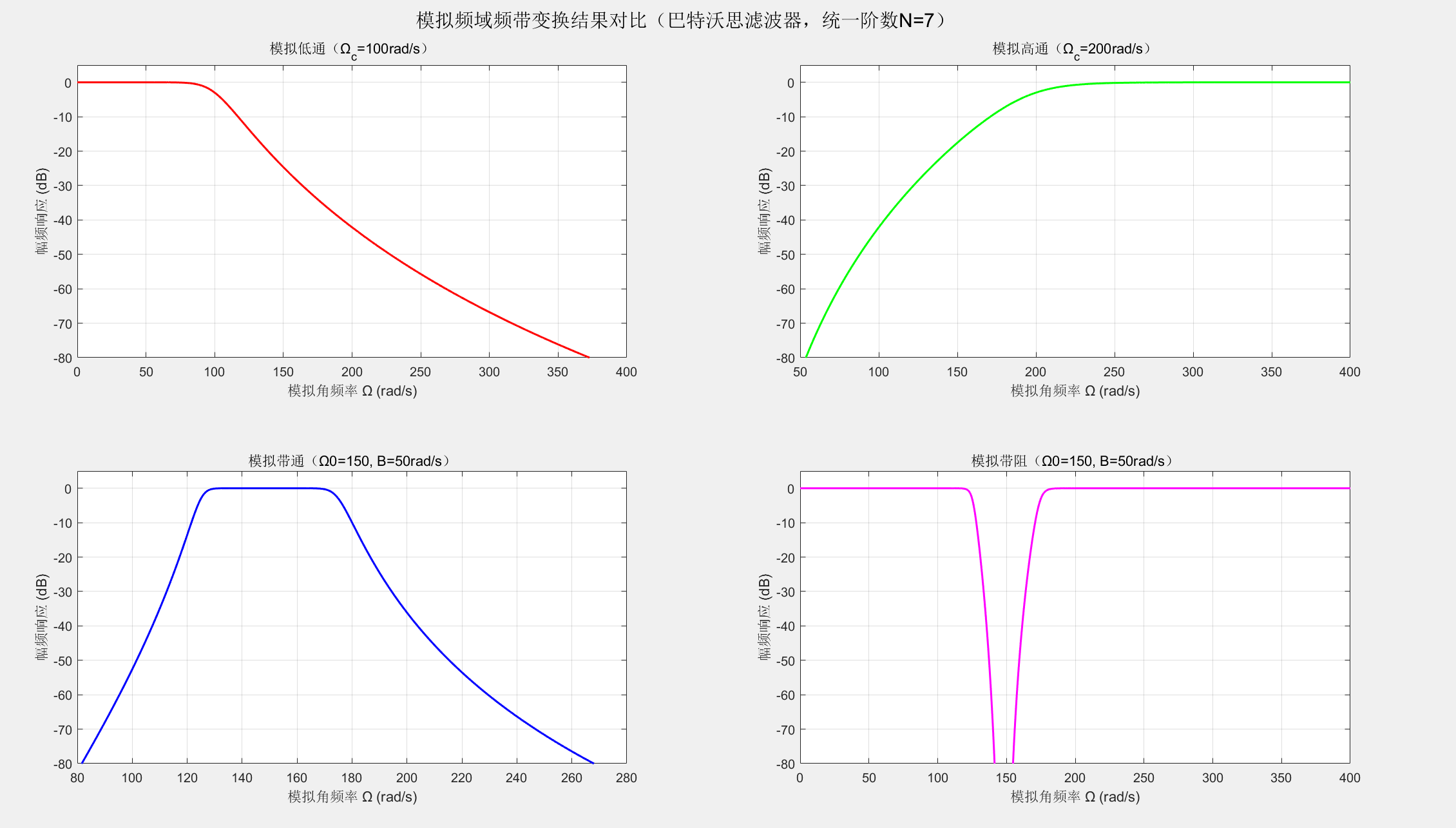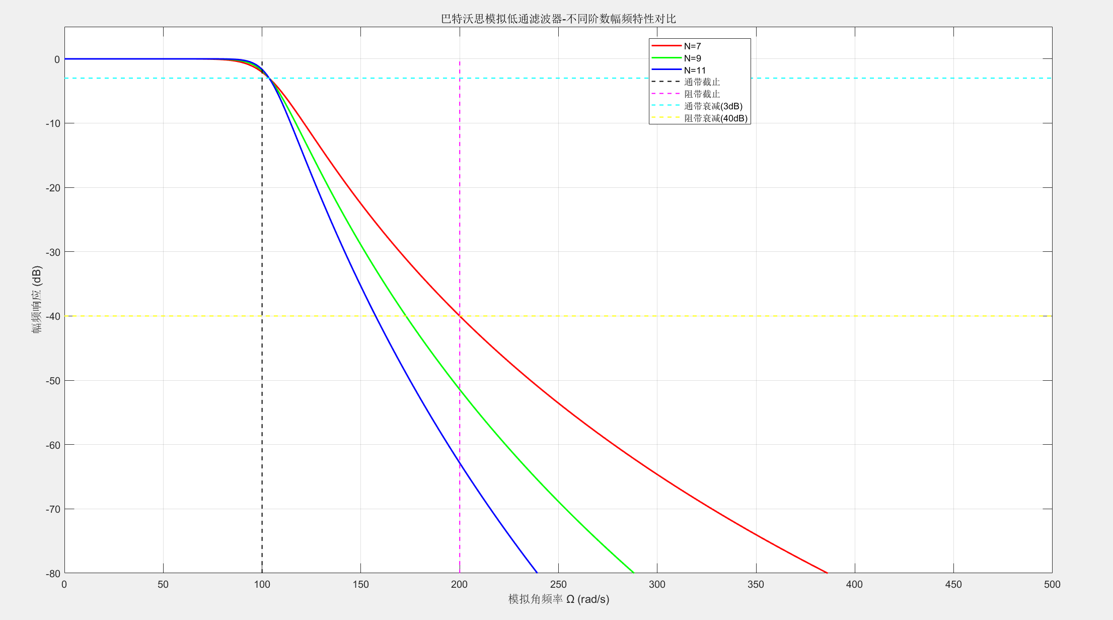 [b, a] = butter(orders(i), Omega_c, 's'); % 设计模拟巴特沃思低通滤波器