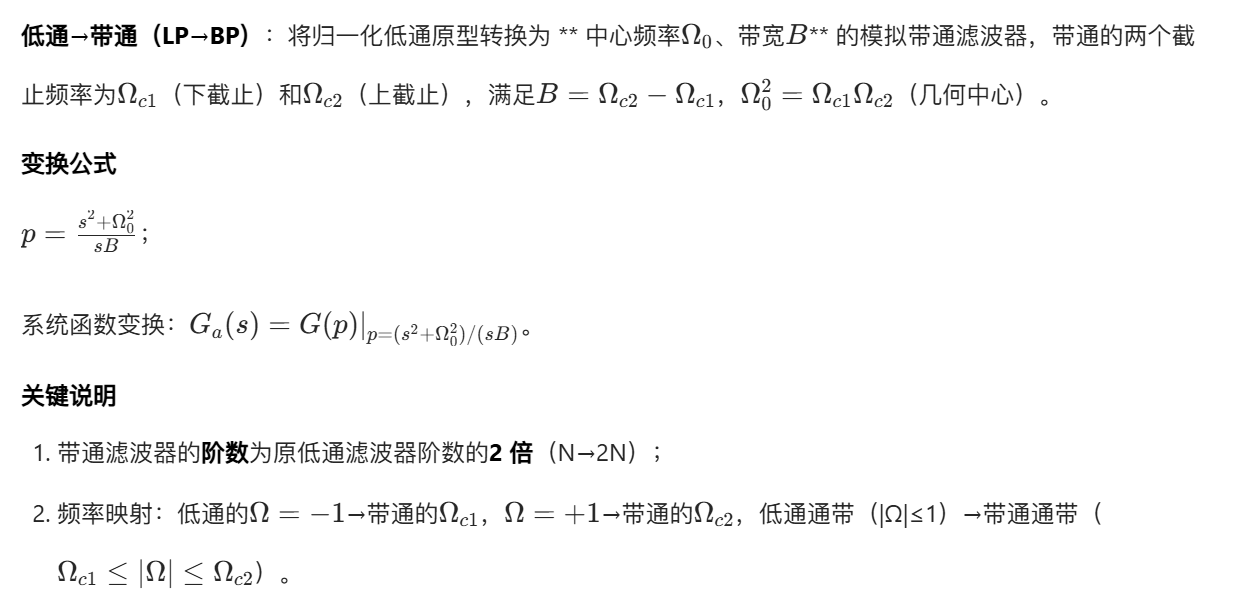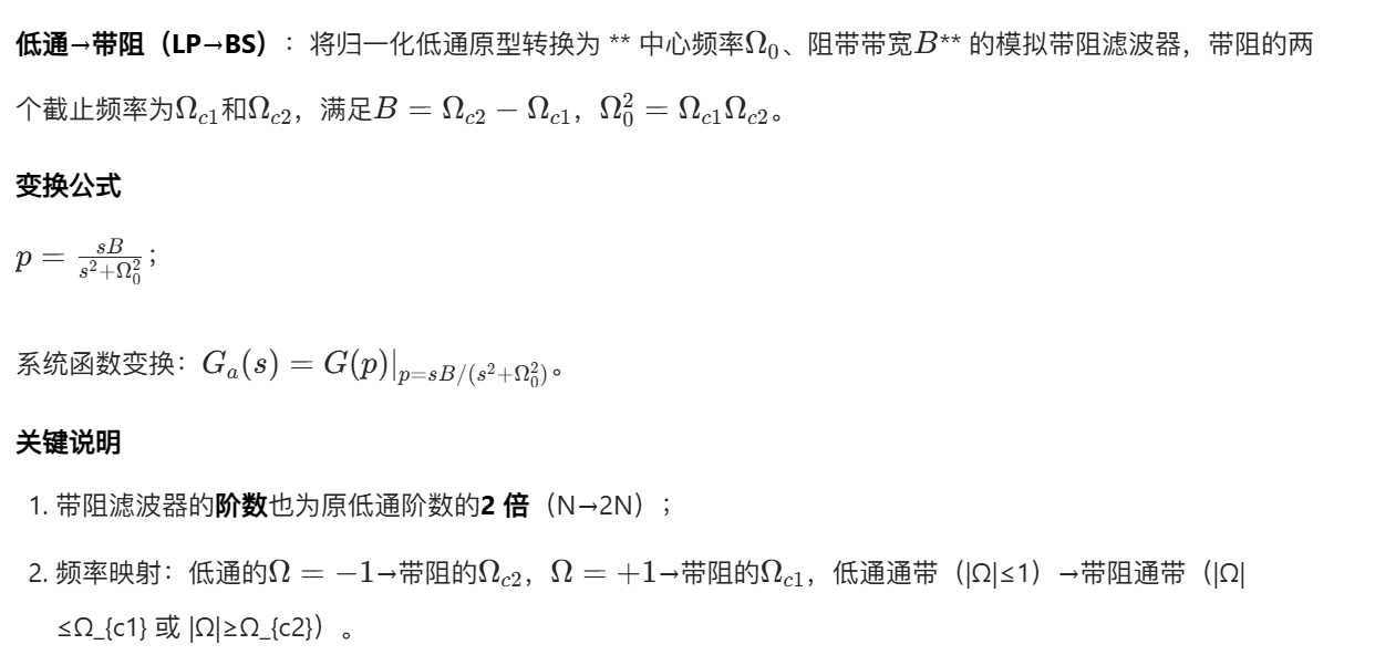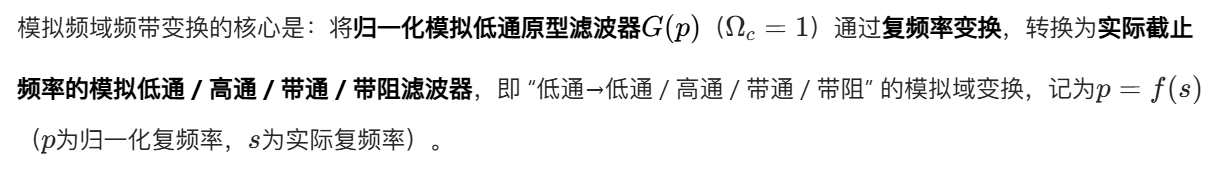 再通过频带变换得到模拟高通 / 带通 / 带阻滤波器,