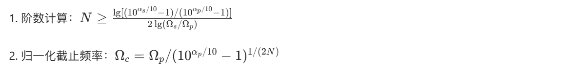 % 2. 计算巴特沃思滤波器的最小阶数N和归一化截止频率Omega_c