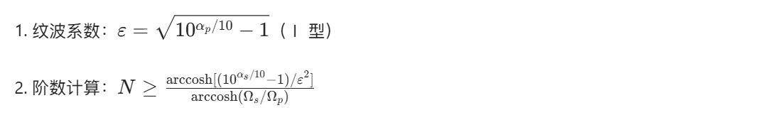 - 优缺点:过渡带窄、阶数低;缺点是存在纹波(Ⅰ 型通带、Ⅱ 型阻带),设计稍复杂。