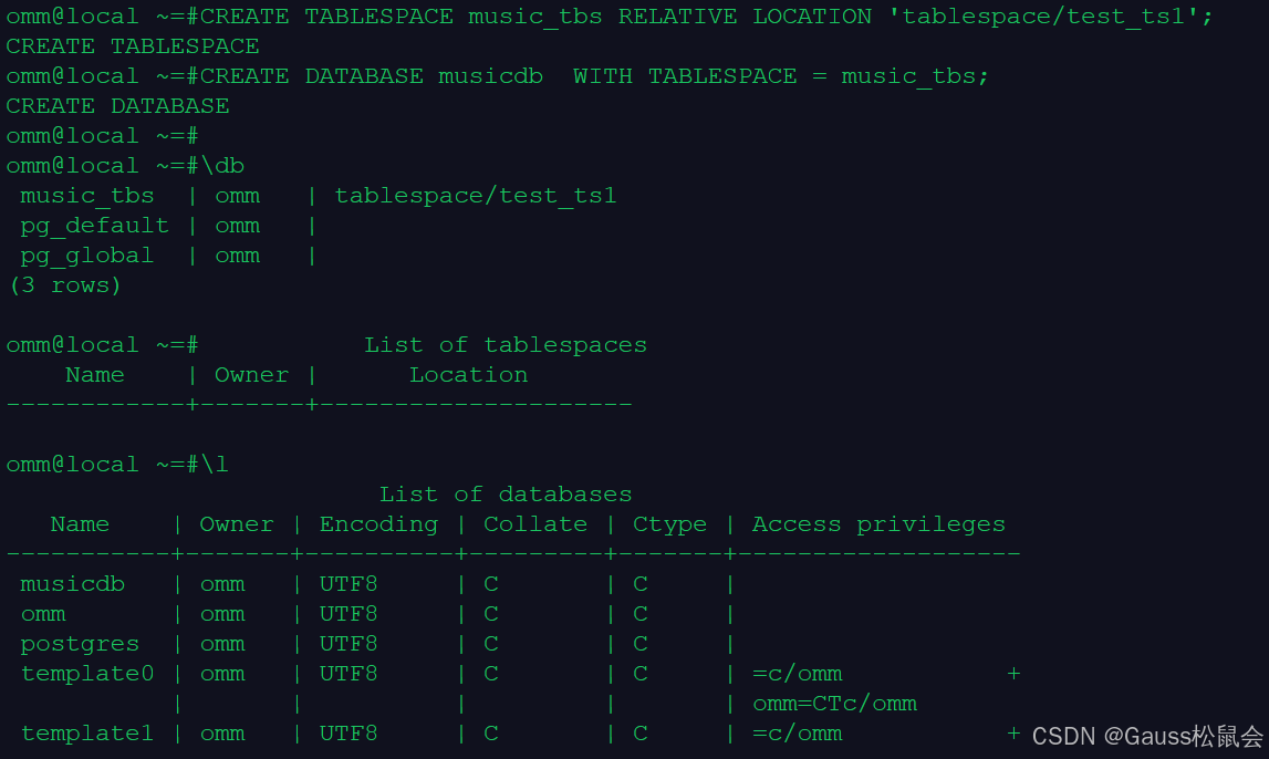 CREATE TABLESPACE music_tbs RELATIVE LOCATION 'tablespace/test_ts1';