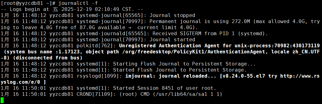[root@yyzcdb81 ~]# mkdir -p /var/log/journal