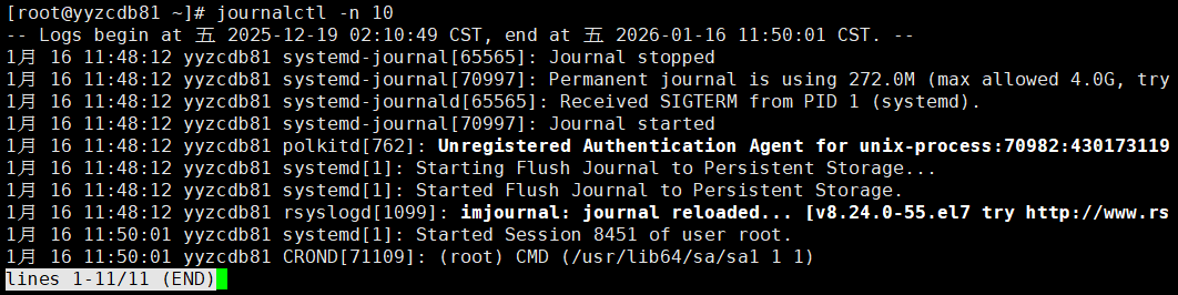 [root@yyzcdb81 ~]# journalctl --list-boots