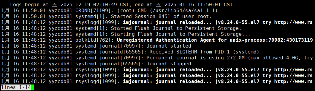 [root@yyzcdb81 ~]# systemctl restart systemd-journald
