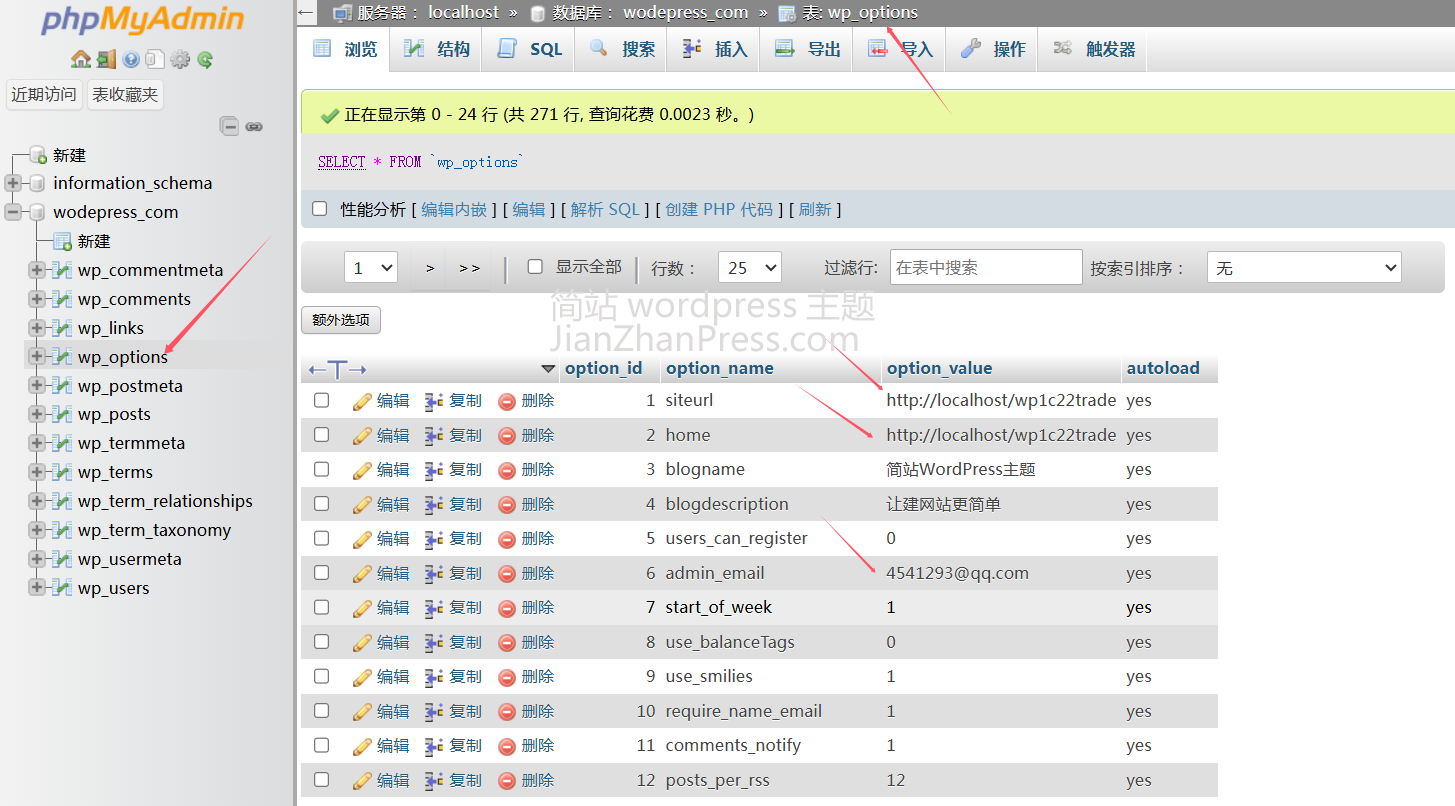 数据导入成功后找到 wp_options 表