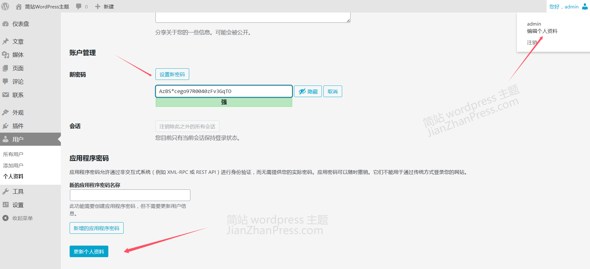 接下来就是输入自己的域名/wp-admin,登陆到网站的后台,进行 WordPress 网站的其它设置。