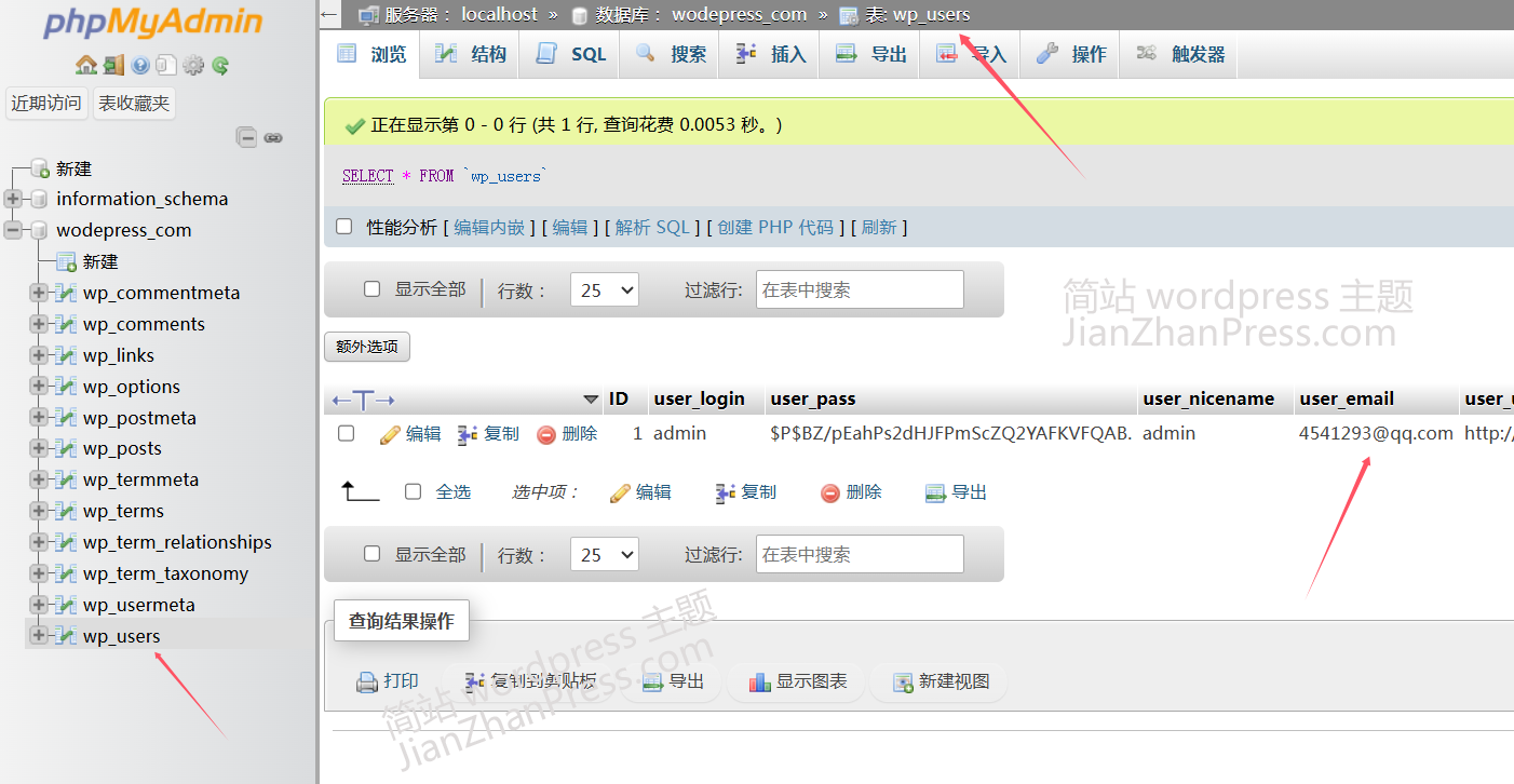 再找到 wp_users 表