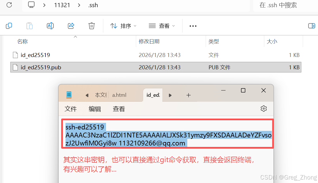 - 打开生成的ssh文件夹,按记事本打开后缀.pub文件,复制密钥放到原创仓库里面